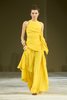 Severance, che possiamo tradurre come "distacco", è per lo stilista Romeo Gigli la poesia di ciò che si spezza ma resta impresso sul corpo. Drappeggi inconsueti si annodano in sete liquide, come legami interrotti che ancora si intrecciano. Organze trilobate, leggerissime, attraversate da righe coloniali si aprono in plissé irregolari come memorie che vibrano ai margini della pelle. Le superfici ricamate in foglie di corda diventano mappe del corpo e della memoria. Le strutture ergonomiche, quasi autoindossate, modellano i volumi attraverso una sartorialità intima: orli rimessi, crinoline nascoste che fioriscono in spirali, come boccioli trattenuti nel tempo. Una femminilità tra il romantico e l’etereo.